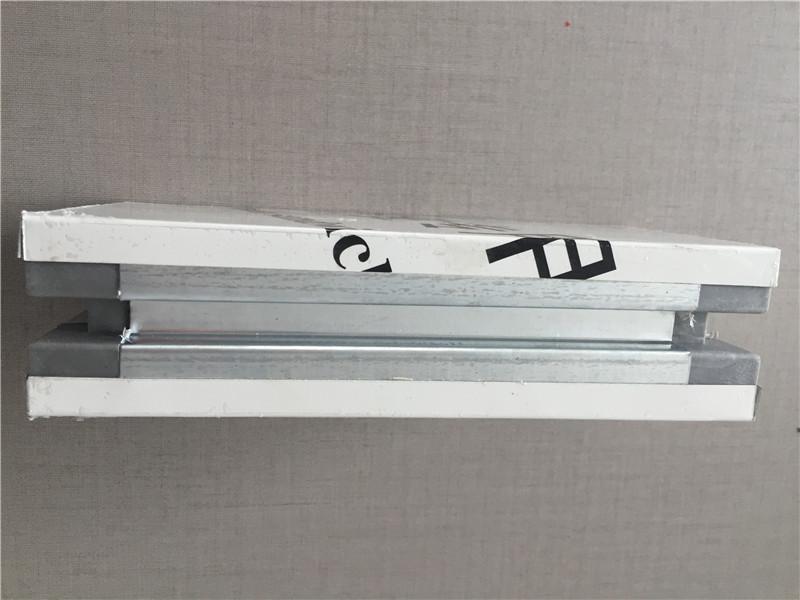 采用優(yōu)質(zhì)彩色涂層鋼板為面層,內(nèi)夾聚氨酯芯材,采用手工制作工藝。四周采用鋁合金龍骨或鍍鋅鋼帶龍骨框。