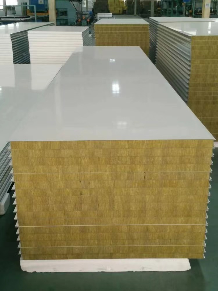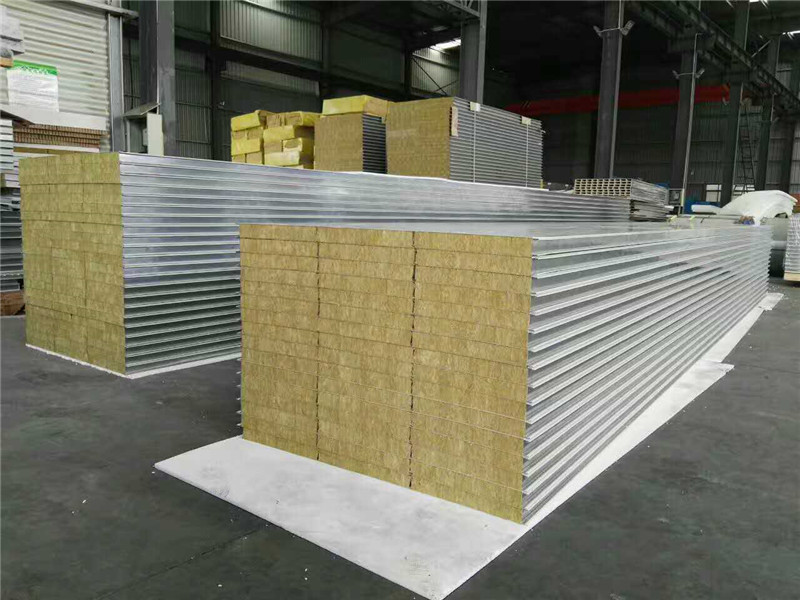 巖棉夾心彩鋼是以彩色涂層鋼板為面材,以巖棉為芯材,用熱固化膠在連續(xù)成型機(jī)內(nèi)加壓復(fù)合而成的防火建筑板材。巖棉又稱巖石棉、是礦物棉的一種,一天然巖石及礦物等原材料制成的蓬松狀短細(xì)纖維,不可燃。