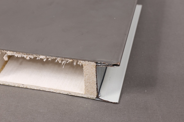 不銹鋼凈化板的板面材質(zhì)是不銹鋼板,常用不銹鋼板型號有201、304、430等,以巖棉、玻鎂巖棉、硅酸鋁、聚氨酯、鋁(紙)蜂窩等材料為芯層,以龍骨為支撐,經(jīng)過加溫加壓,膠水固化后制成。
