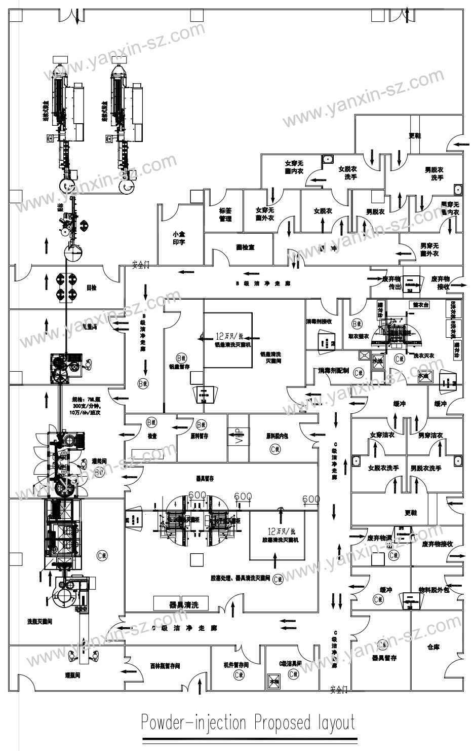 粉針無菌分裝工藝平面設計