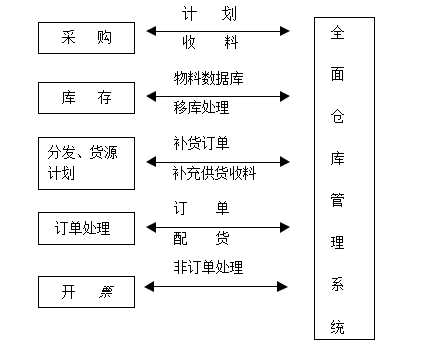 計算機管理系統(tǒng),尤其對現(xiàn)代制藥廠的高架貨位管理是十分必要。該系統(tǒng)多是全公司聯(lián)網(wǎng)管理,以達到全面控制、信息共享。如果能正確使用網(wǎng)絡系統(tǒng),則可以做到庫存降低、資金合理流動,把營銷、生產(chǎn)、庫存、采購、財務、分發(fā)和運輸?shù)热婵刂破饋?,減少差錯和失控。如BPCS 系統(tǒng)的軟件,它的倉庫管理的模式如下圖所示: