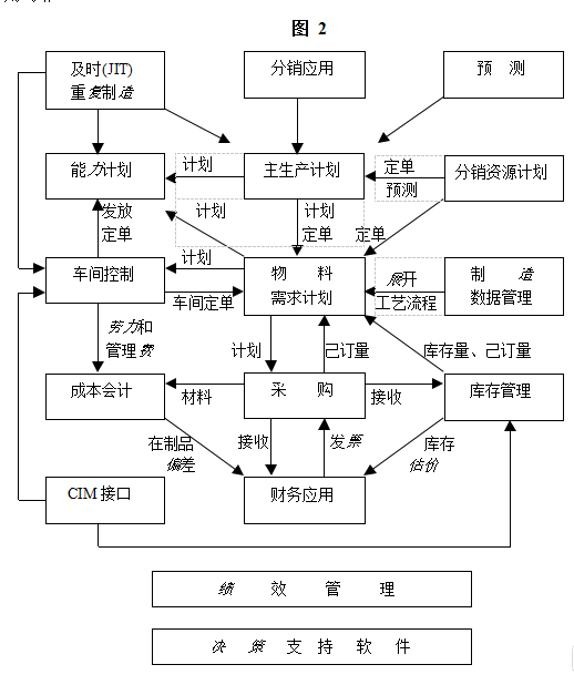 另一種屬生產(chǎn)資源系統(tǒng)(MRPⅡ)是計算機集成生產(chǎn)系統(tǒng)(CIM)信息集成的支柱,涉及到生產(chǎn)計劃、物流管理(物料清單、物料需求計劃、庫存管理等)、能力管理和能力需求計劃、生產(chǎn)現(xiàn)場管理、財務管理(包括成本管理)、及時生產(chǎn)管理(JIT)等。