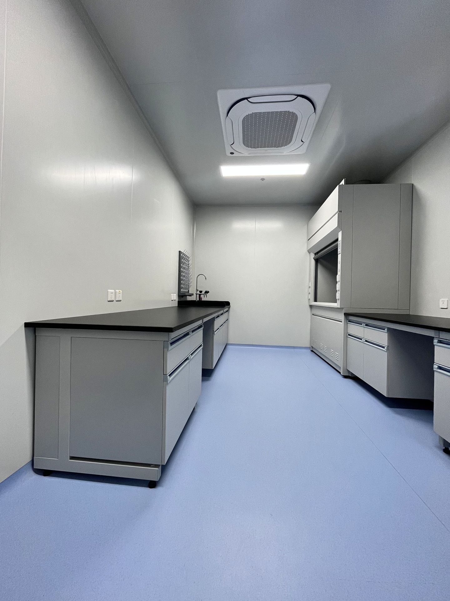這里是高標準凈化實驗室項目現(xiàn)場,我們以機制板為主體圍護材料,打造了氣密、防塵、抗菌的潔凈空間。墻面平整無縫、陰陽角圓弧過渡,徹底消除積塵死角,為實驗室構建起穩(wěn)定的潔凈屏障。
